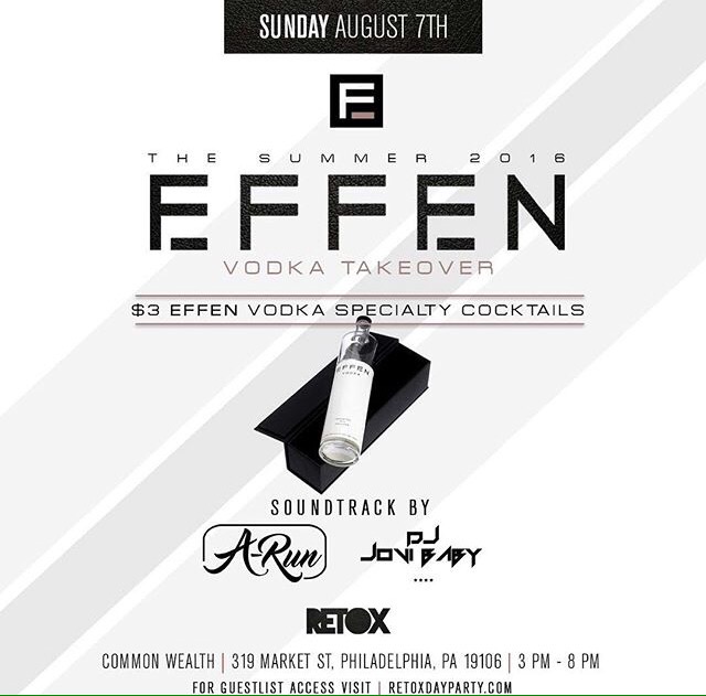 New Event: Retox Day Party 08/05/201609/30/2016 / itsjovibaby / Leave a comment •SUNDAY• Join Us as EFFEN Vodka takes over the ((Retox Day Party)) | $3 EFFEN Cocktails Until 5pm Audio By: #DJJOVIBABY x #DJARun 🎉💃 @retoxdayparty