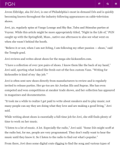 That’s what the people always want to know! ..So WHO is the DJ? … SHE is Jovon ‘’Jovi Baby’’ Eldridge, a well known Sneaker Connoisseur and Party Rocker.